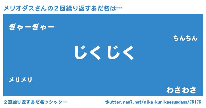 | 意味不明あだ名 | 『住所不定無職メリオダス(4歳)』 |