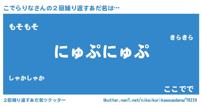 | 女子向けラノベタイトル風あだ名 | 『こでらりなの卵を拾いまして』 |