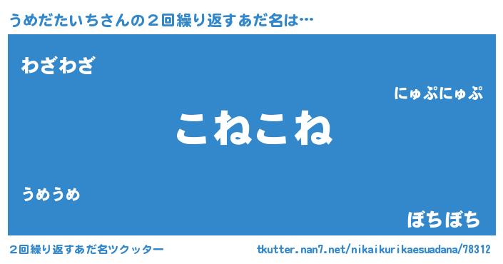 | ヘコむあだ名 | 『うめだたいち(震え声)』『うめっちょ』 |