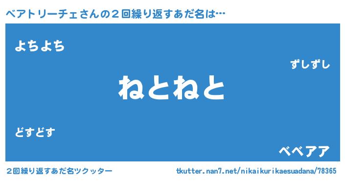 | 欧米人風あだ名 | 『ウサインベアトリーチェ』 |