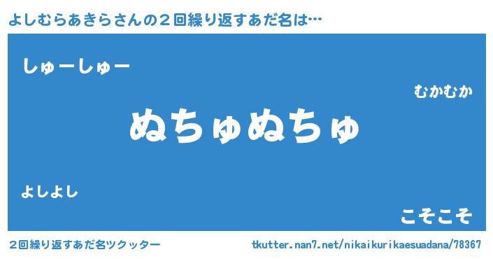 | ヘコむあだ名 | 『よしぷりん』『よしむらあきら(小並感)』 |