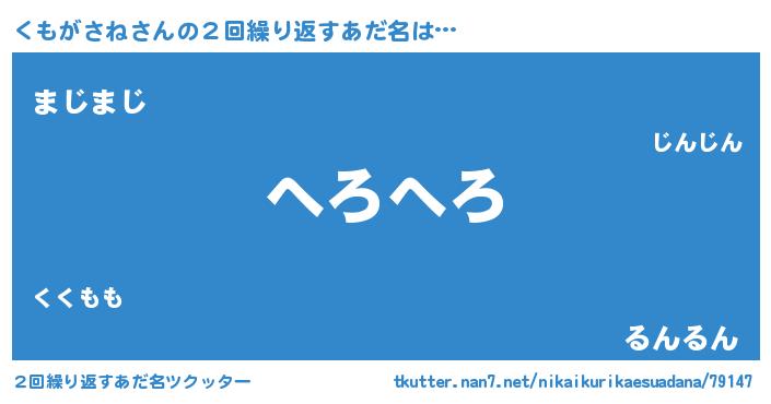| ヘコむあだ名 | 『なまこ酢』『くももー』『くもっ子』 |