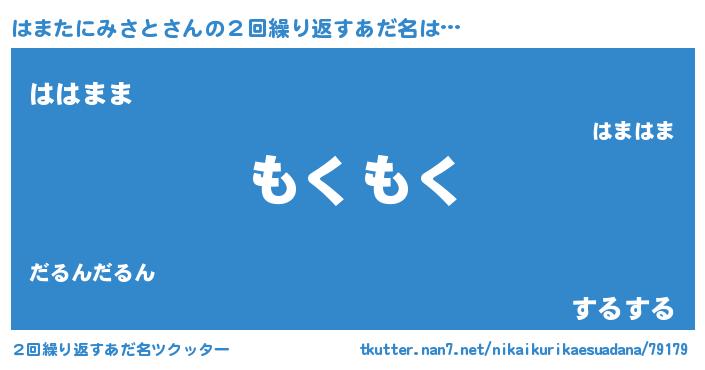 | 男性向けラノベタイトル風あだ名 | 『Re:はまたにみさとから始める異世界生活』 |