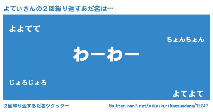 | ヘコむあだ名 | 『豆乳』『よてふぇ~』『よてっ子』 |