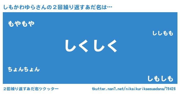 | 意味不明あだ名 | 『住所不定無職しもかわゆら(41歳)』 |