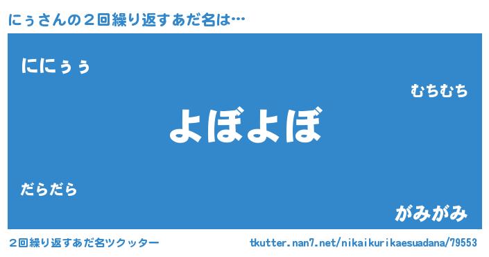 | ヘコむあだ名 | 『つくし』『にぅ(震え声)』『にぅお』 |