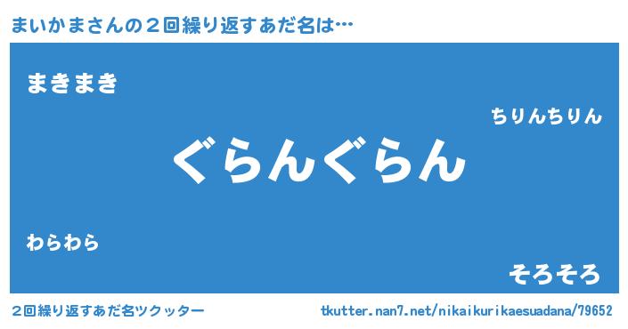 | 意味不明あだ名 | 『永久保存まいかま』『自称まいかま』 |