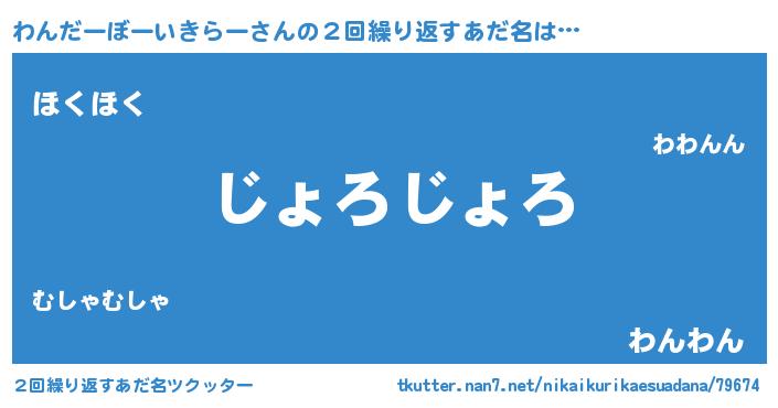 | 男性向けラノベタイトル風あだ名 | 『この素晴らしい世界にわんだーぼーいきらーを!』 |