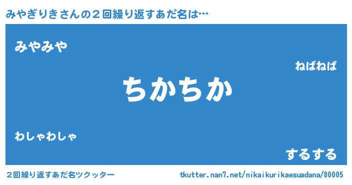 | ヘコむあだ名 | 『みやにー』『みやお』『酢こんぶ』 |