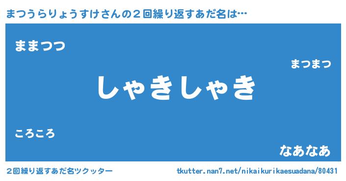 | 意味不明あだ名 | 『住所不定無職まつうらりょうすけ(59歳)』 |