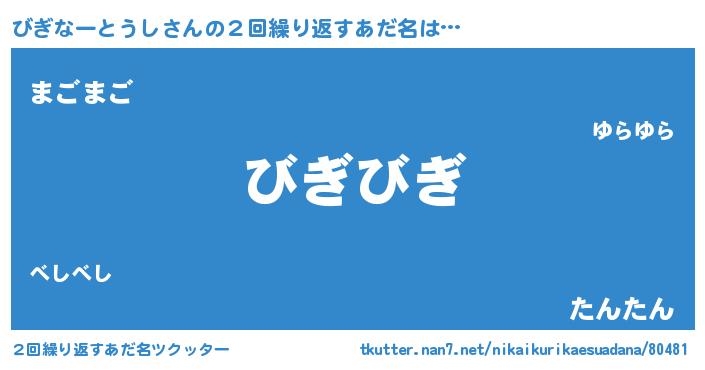 | ポケモン風あだ名 | 『ビギチュウ』『ビギセウス』 |