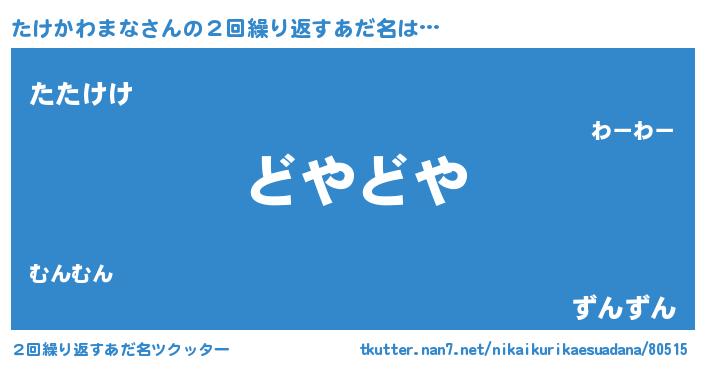 | 意味不明あだ名 | 『たけかわまなフォーエバー』 |
