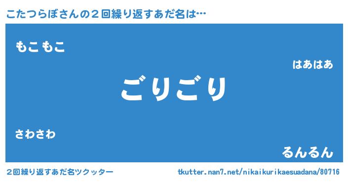 | 意味不明あだ名 | 『永久保存こたつらぼ』『自称こたつらぼ』 |