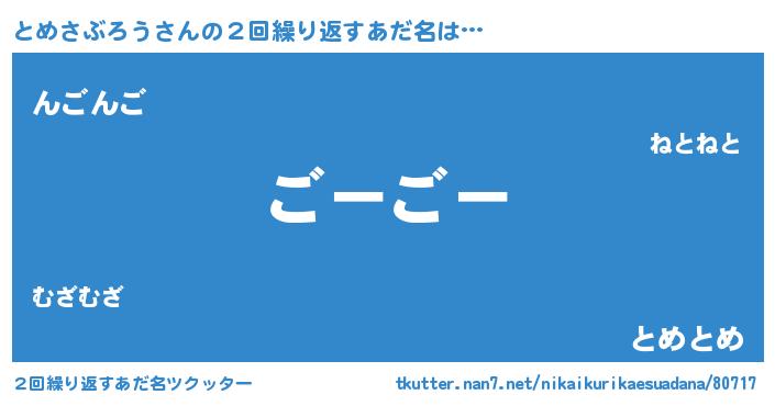 | ヘコむあだ名 | 『とめさぶろう(苦笑)』『とめもー』 |