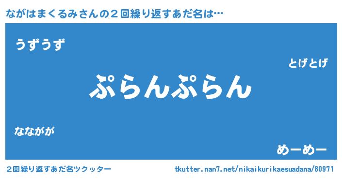 | 意味不明あだ名 | 『眠気覚ましガムながはまくるみ味』 |