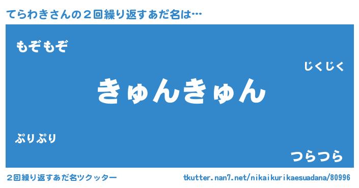 | ヒーロー風カッコイイあだ名 | 『ネオテラワキ』『最強戦士テラワキ』 |