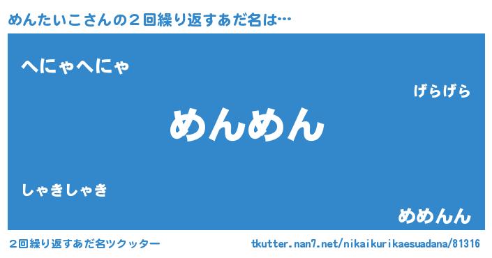 | 自動車の名前っぽいあだ名 | 『メンティマ』『メンR』『メクア』 |