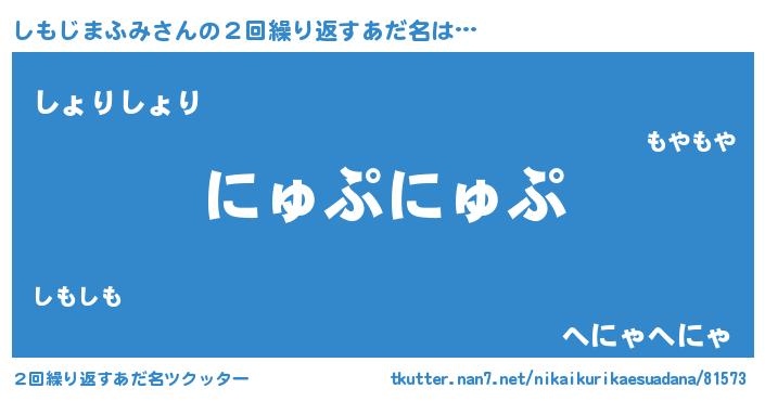 | 意味不明あだ名 | 『とにかく怪しいしもじまふみ』 |