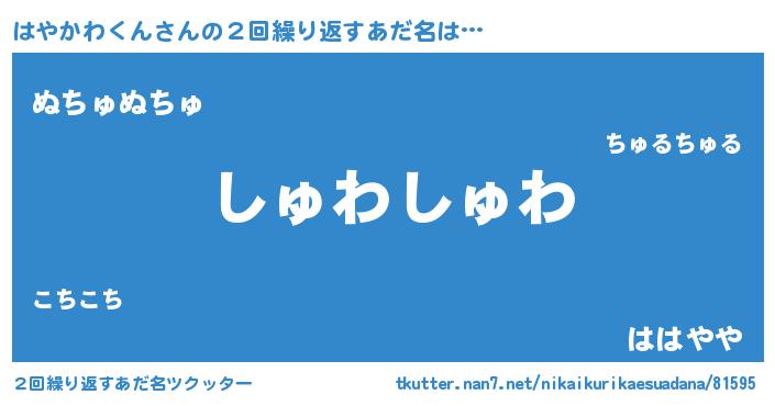 | 男性向けラノベタイトル風あだ名 | 『魔弾の王とはやかわくん』 |
