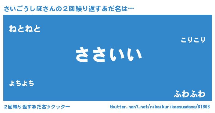 | ポケモン風あだ名 | 『サイゴダネ』『ヒサイゴウシホ』 |