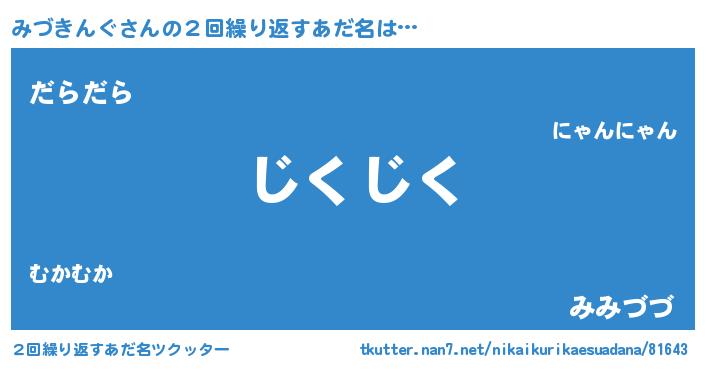 | 意味不明あだ名 | 『住所不定無職みづきんぐ(74歳)』 |