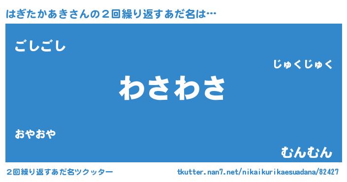 | 男性向けラノベタイトル風あだ名 | 『転生したらはぎたかあきだった件』 |