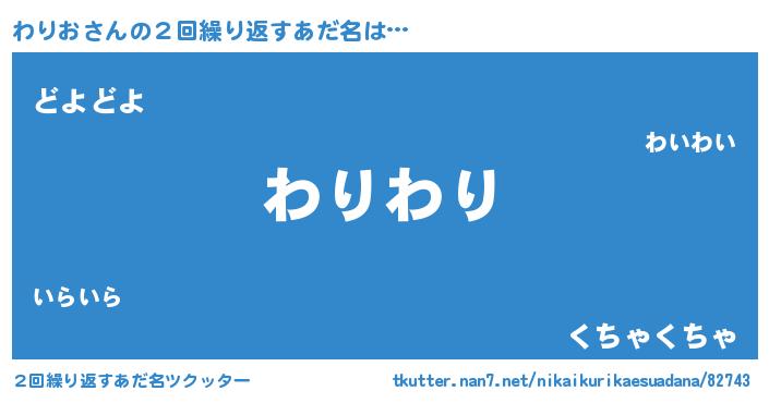 | 意味不明あだ名 | 『ペロリンわりお』『永久保存わりお』 |