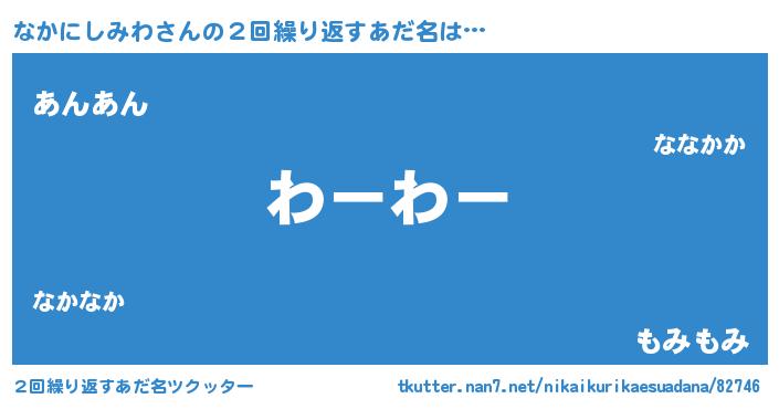 | ポケモン風あだ名 | 『ナカキング』『ヒナカニシミワ』 |