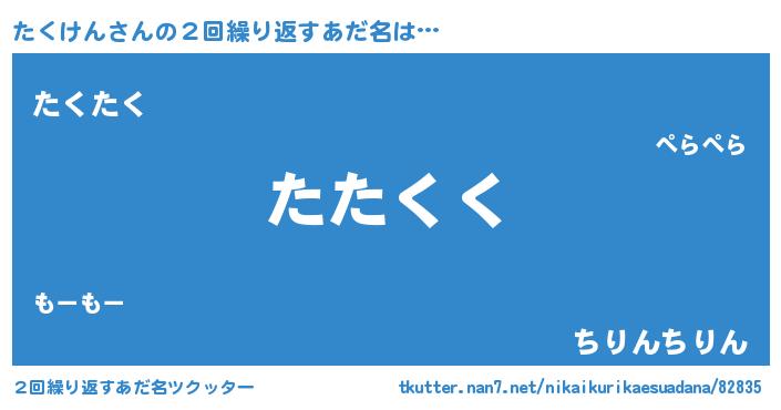 | 意味不明あだ名 | 『たくけんフォーエバー』『自称たくけん』 |