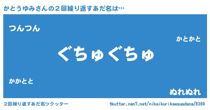 | 意味不明あだ名 | 『永久保存かとうゆみ』 |