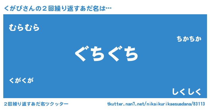 | 意味不明あだ名 | 『永久保存くがぴ』『自称くがぴ』 |