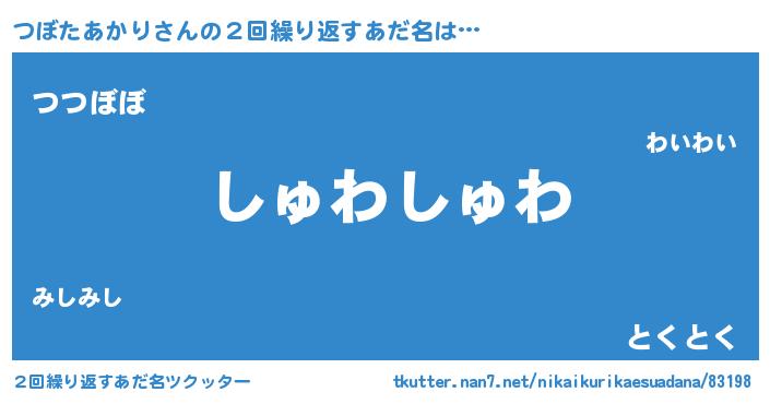 | 意味不明あだ名 | 『住所不定無職つぼたあかり(2歳)』 |