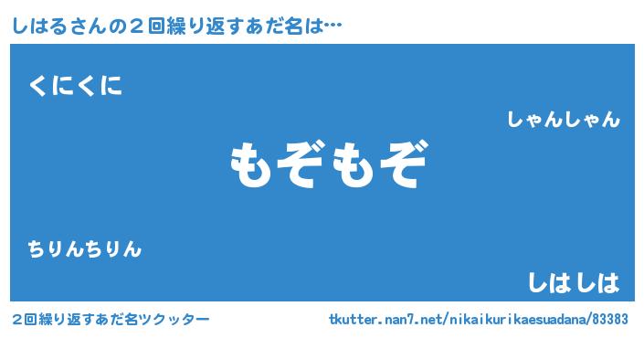 | 男性向けラノベタイトル風あだ名 | 『Re:しはるから始める異世界生活』 |