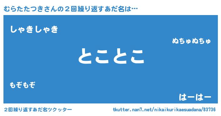 | 意味不明あだ名 | 『住所不定無職むらたたつき(81歳)』 |