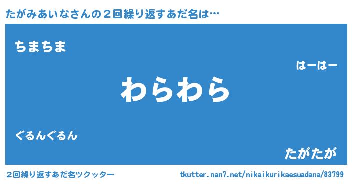 | ヘコむあだ名 | 『たがっふぃ~』『たがみあいな(苦笑)』 |