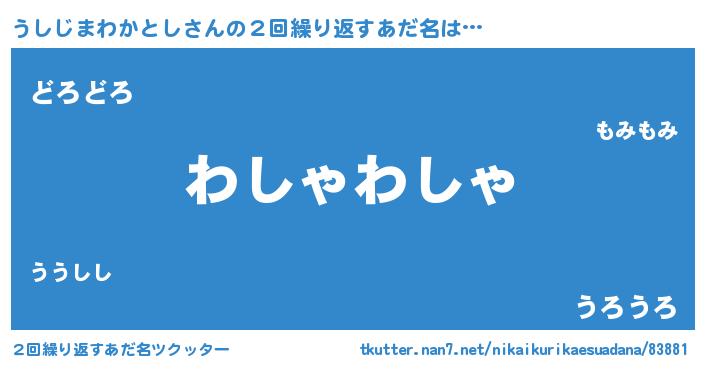 | 男性向けラノベタイトル風あだ名 | 『うしじまわかとし~年齢イコール彼女いない歴の魔法使い~』 |