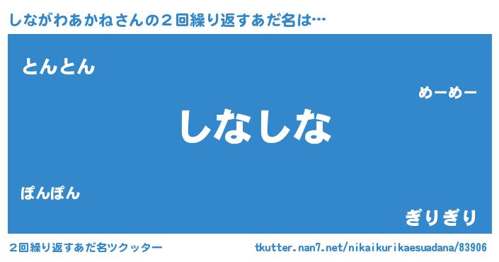 | ヘコむあだ名 | 『しなにゅー』『しながわあかね(笑)』 |