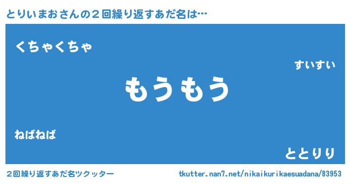 | 可愛いあだ名 | 『とりうちぇる』『とりいまおママ』 |