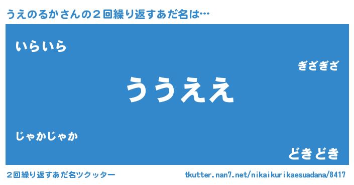 | 意味不明あだ名 | 『うえのるかフォーエバー』 |