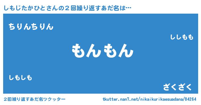 | 意味不明あだ名 | 『自称しもじたかひと』 |