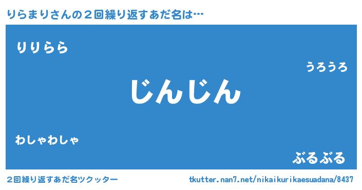 | 意味不明あだ名 | 『住所不定無職りらまり(4歳)』 |