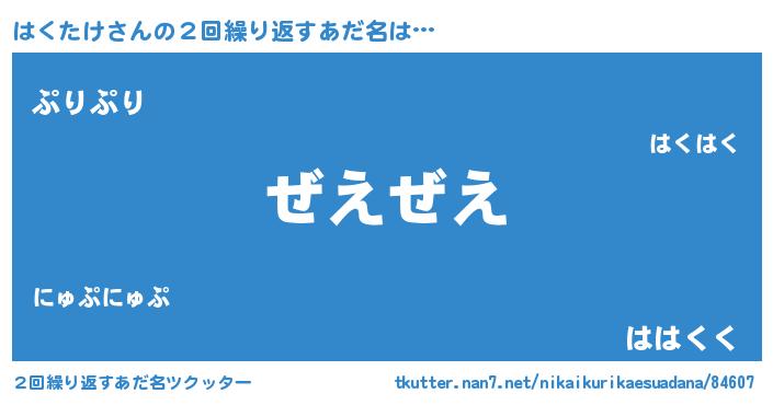 | 男性向けラノベタイトル風あだ名 | 『はくたけに滅ぼされるだけの簡単なお仕事です』 |