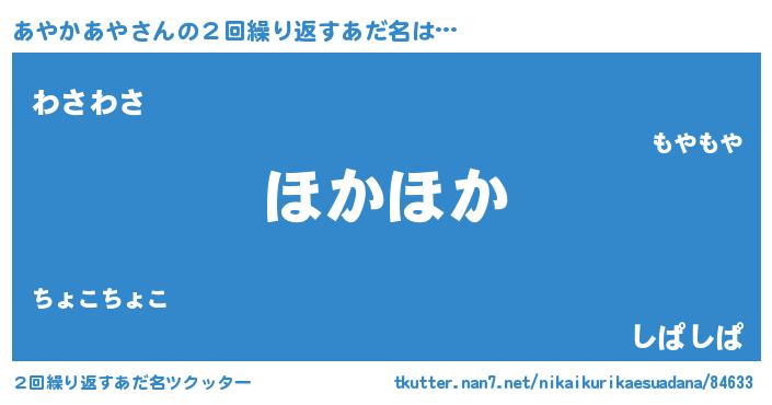 | ヘコむあだ名 | 『あやかあや(震え声)』『あや太郎』 |