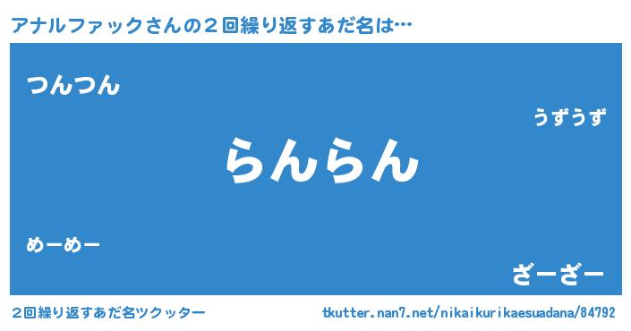 | 料理風あだ名 | 『アナルファックごはん』 |