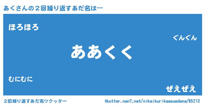 | 女子向けラノベタイトル風あだ名 | 『あくの雑貨屋さん』『死神あくの再婚』 |