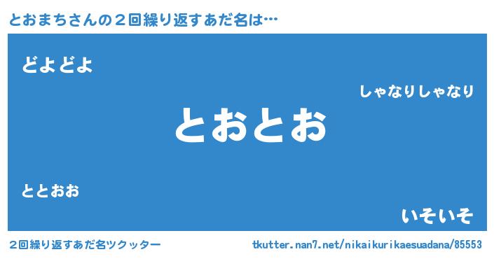| 意味不明あだ名 | 『ペロリンとおまち』『永久保存とおまち』 |
