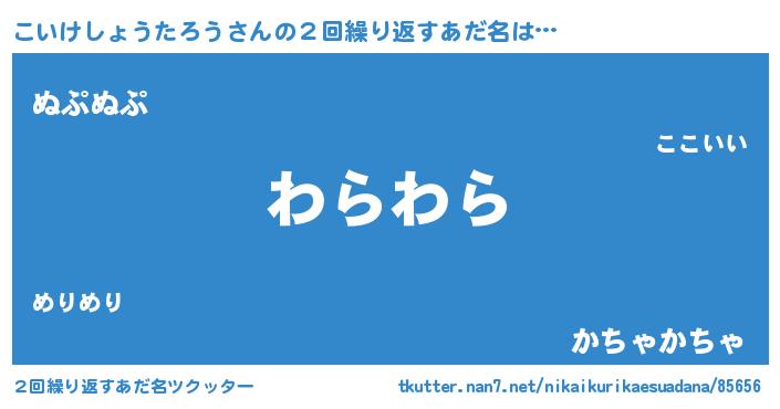 | 男性向けラノベタイトル風あだ名 | 『こいけしょうたろう~年齢イコール彼女いない歴の魔法使い~』 |