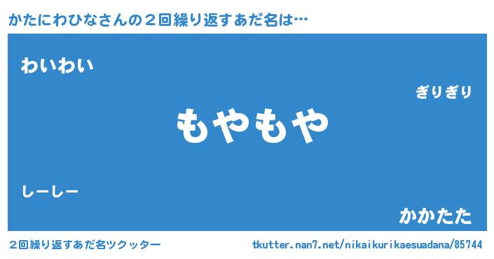 | 女子向けラノベタイトル風あだ名 | 『かたにわひなストレイドッグス』 |