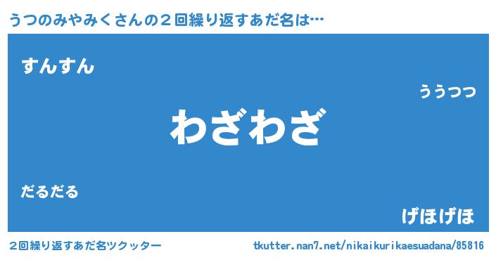 | 肩書あだ名 | 『うつのみやみく上級大将』 |