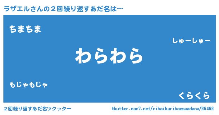 | 恥ずかしいあだ名 | 『ラザちん』『ラザエルデラックス』 |